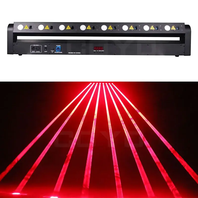 Pixel laser/LED WW bar, 8 rode laser beams, 638 nm / 500 mW elke diode, 8x 3 Watts warm white LEDs narrow beam, laser en LED onafhankelijke controle.